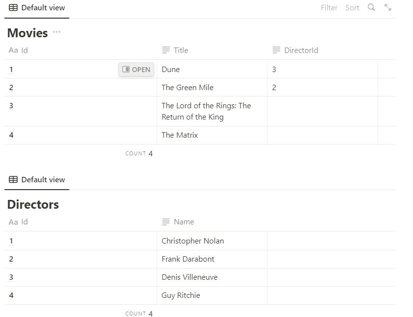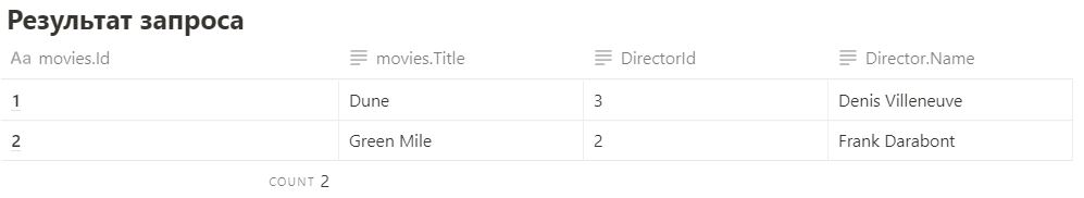 INNER JOIN directors ON movies.DirectorId = directors.Id