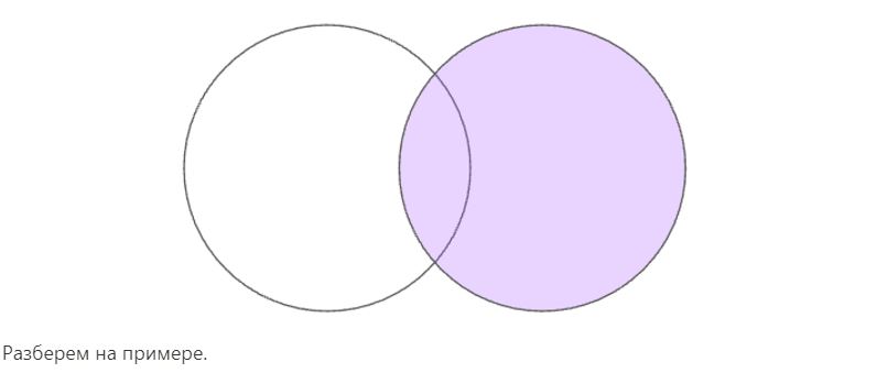 Подходит, если нам нужно найти все значения из первой таблицы и их пересечения со второй. Графически можно изобразить так: