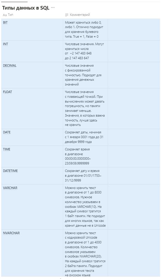 Существуют два вида БД: 1. **Реляционные** базы данных. В них данные хранятся в виде связанных таблиц. 2. **Нереляционные** базы данных. В них данные хранятся иначе. Например, в виде словаря или дерева. Данные в большинстве компаний хранятся в реляционных базах данных в виде связанных между собой таблиц. Обращаться к базе данных с помощью **SQL-запросов** нам позволяет **система управления базами данных — СУБД**.